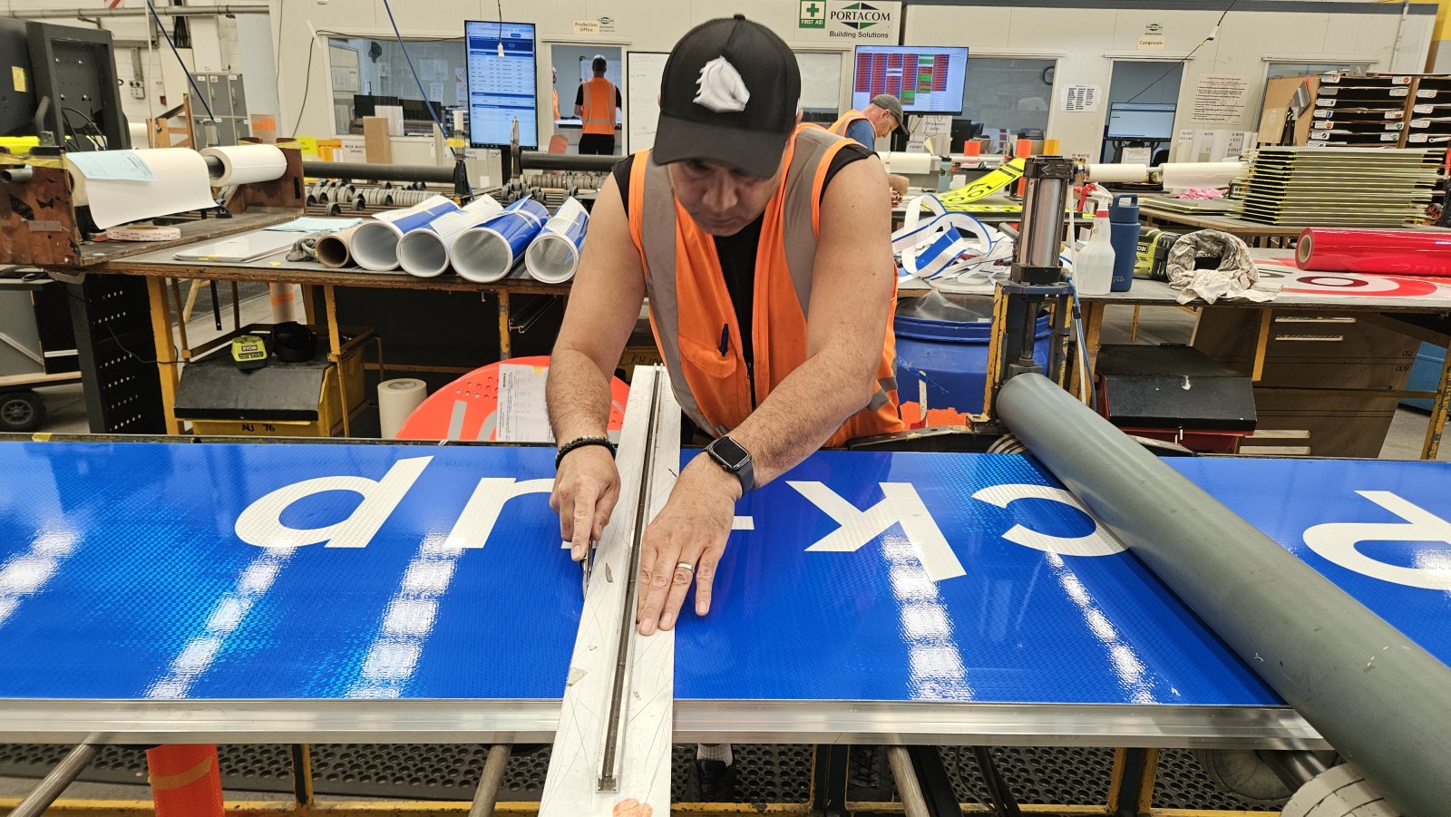 Working to a tight schedule, RTL manufactured the sign in multiple panels, each set out to match the required join locations and lane guidance. This approach ensured the sections came together cleanly on site, with the arrows and lane information lining up perfectly.