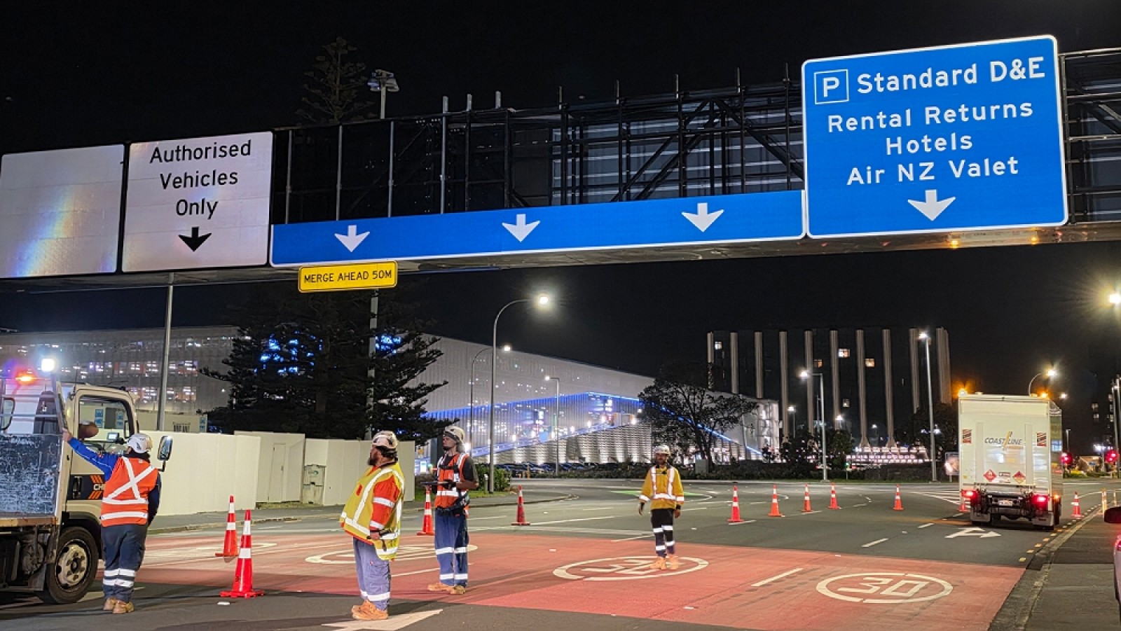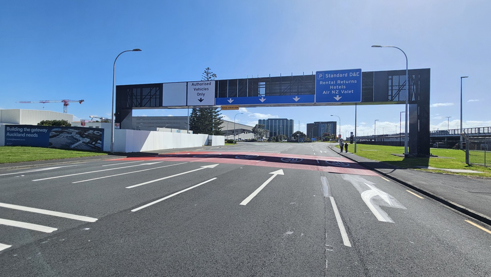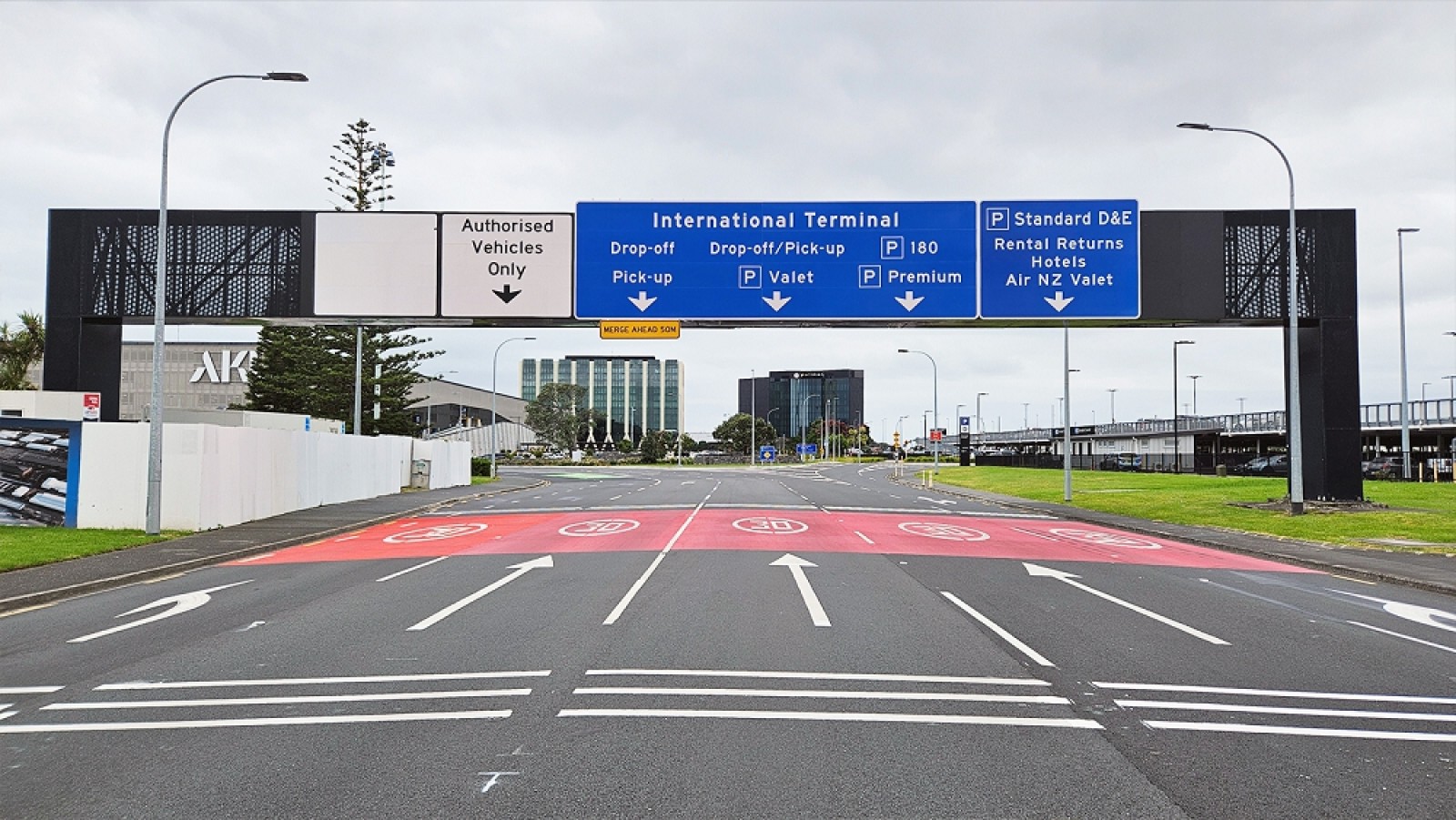RTL and Directionz supplied and installed new gantry signage on Tom Pearce Drive at Auckland International Airport, one of New Zealand’s busiest airports. The project successfully delivered a three-lane, 11-metre-wide by 3.3-metre-high sign mounted on the existing five-lane gantry with minimal disruption to airport traffic. The completed upgrade helps visitors choose the right lane early and move through the airport easily.