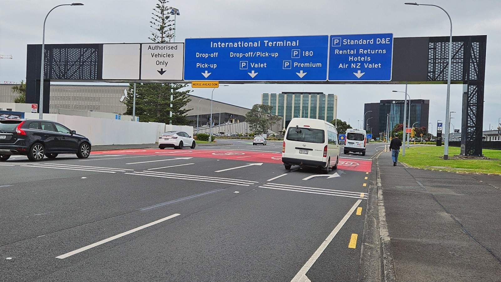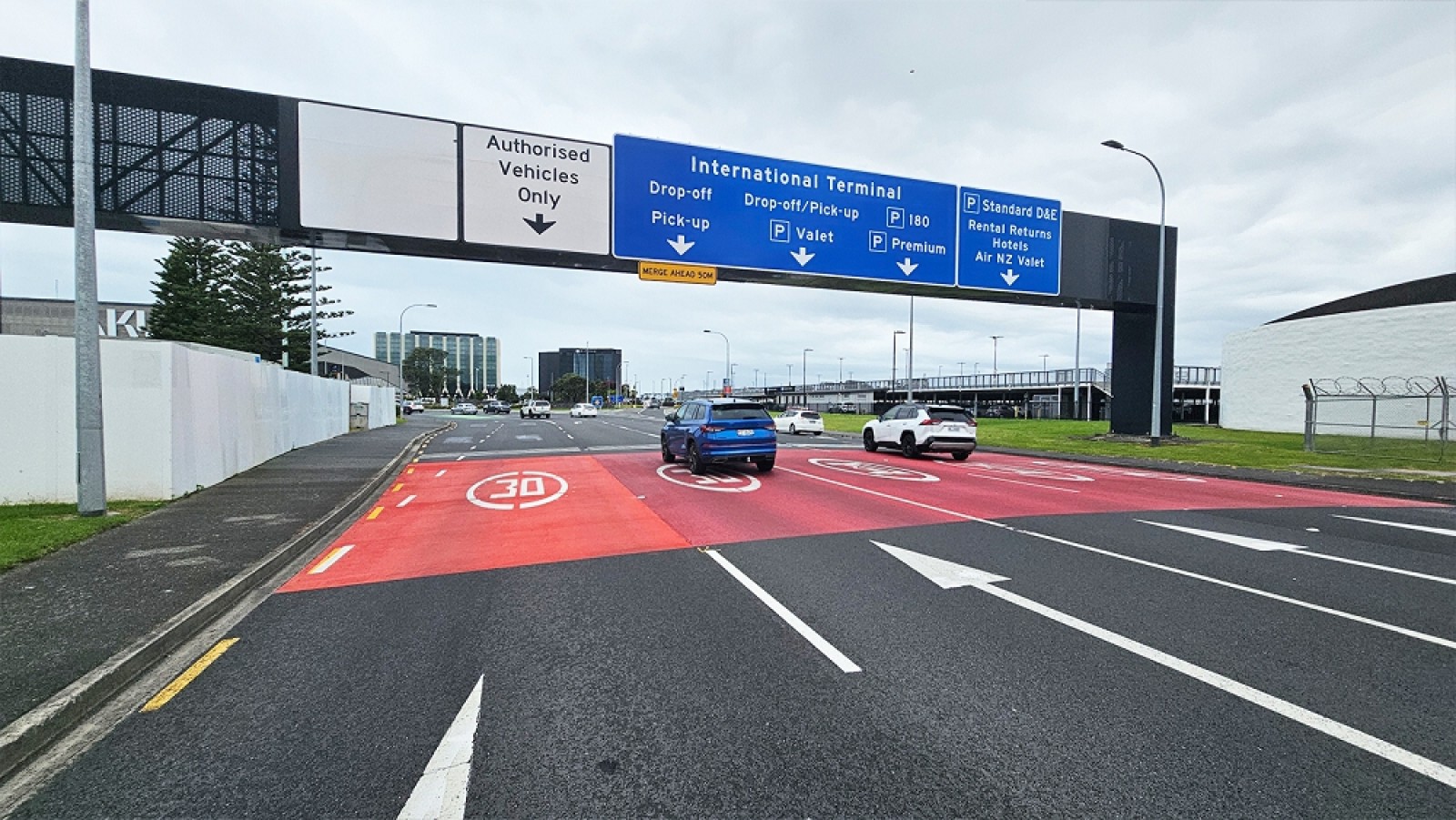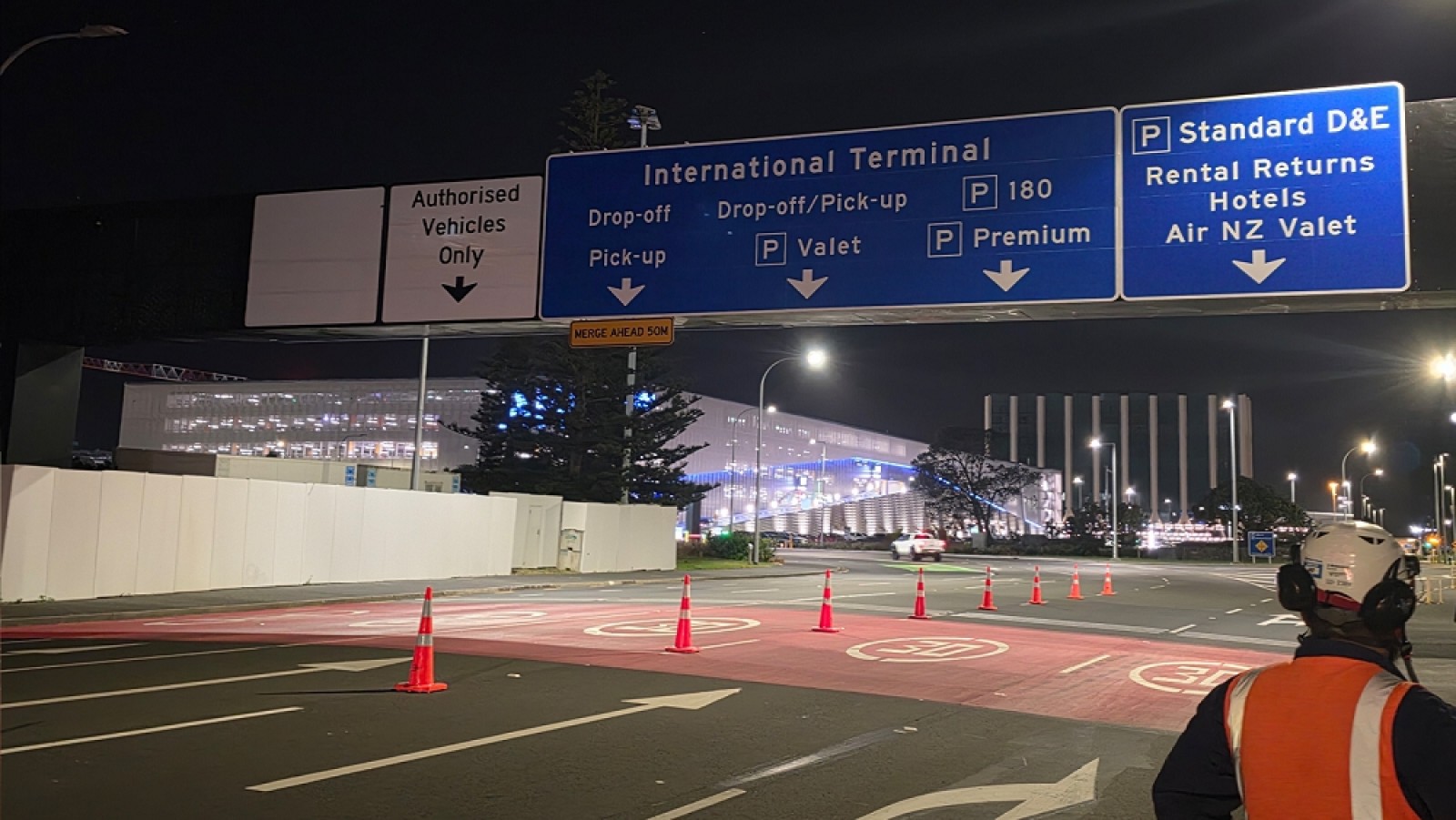 RTL and Directionz supplied and installed new gantry signage on Tom Pearce Drive at Auckland International Airport, one of New Zealand’s busiest airports. The project successfully delivered a three-lane, 11-metre-wide by 3.3-metre-high sign mounted on the existing five-lane gantry with minimal disruption to airport traffic. The completed upgrade helps visitors choose the right lane early and move through the airport easily.